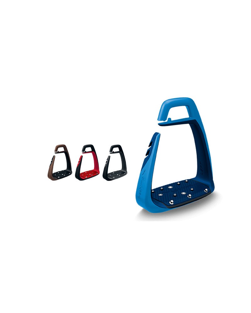 - meilleure capacité d’absorption des chocs. Divise par trois les efforts reçus sur chaque étrier et soulage les articulations du cavalier et le dos du cheval grâce à une nouvelle géométrie de la branche. Amorti 3 fois plus élevé qu’avec un étrier traditionnel.
