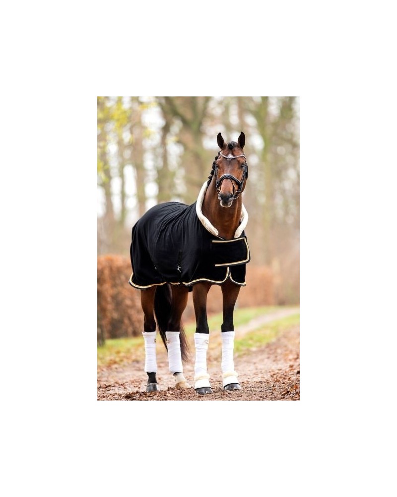 Couverture de présentation luxueuse en polaire 400 g/m² avec col et rabat de poitrine en fausse fourrure, sangles et deux cordons.