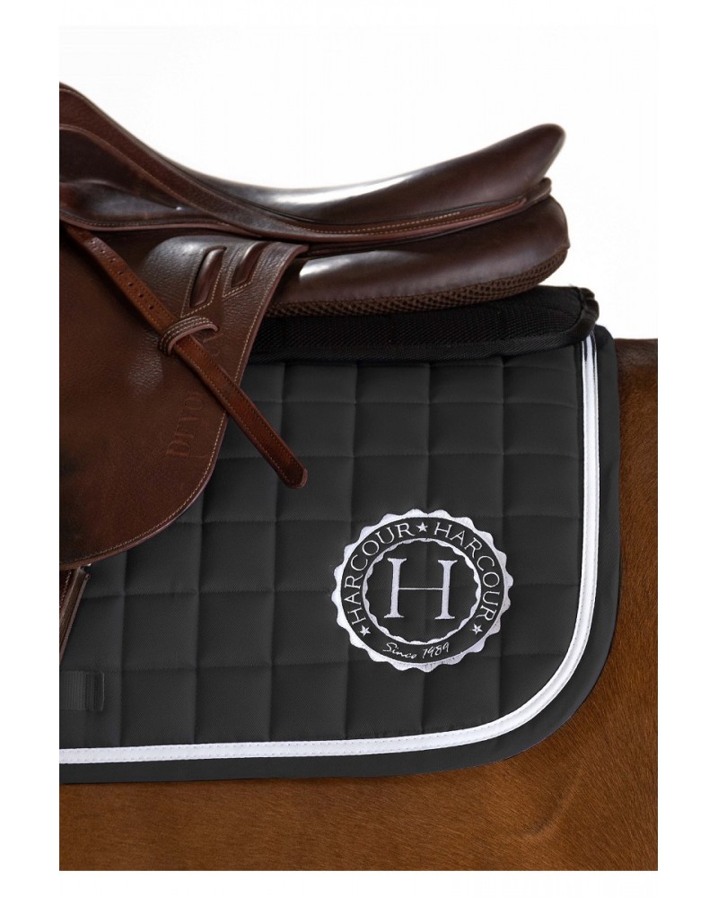 Vous retrouverez l'emblématique patch en cuir avec le logo Harcour au garrot ainsi que des passages de sangle résistants pour assurer un meilleur maintien sous la selle.
