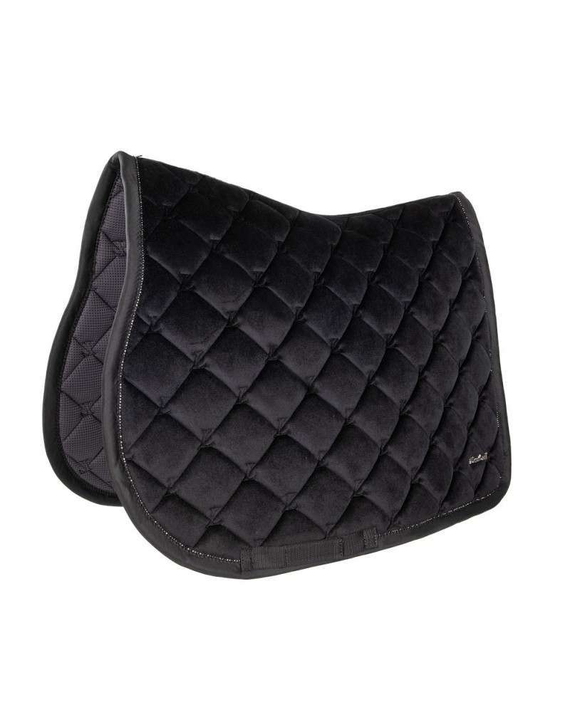 Tapis de selle Galaxy Velvet avec 3D velours à l’extérieur, mousse haute densité 5mm, garniture synthermax 240g et Charbon de Bambou à l’intérieur. Fini avec des strass noirs (cousus).